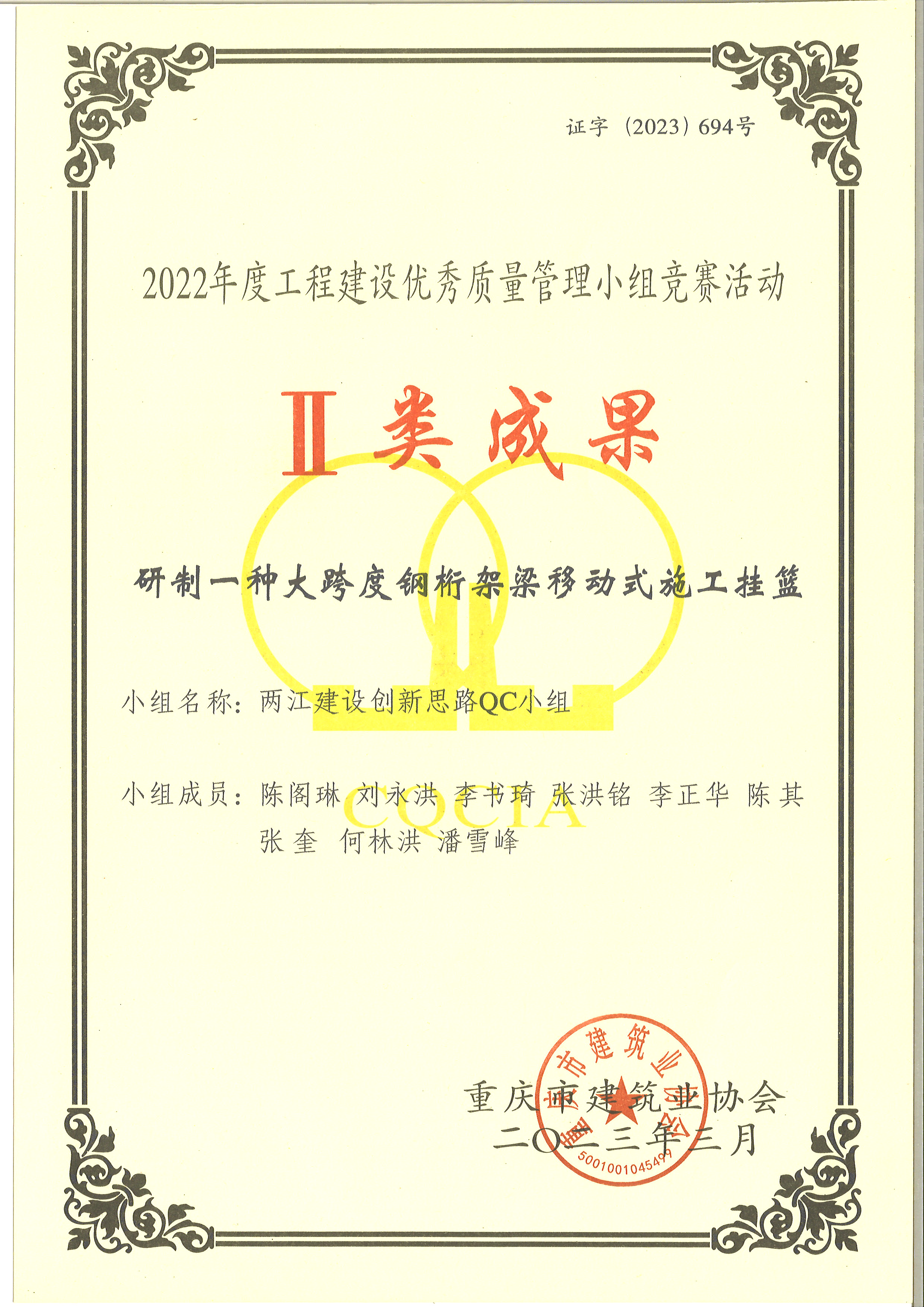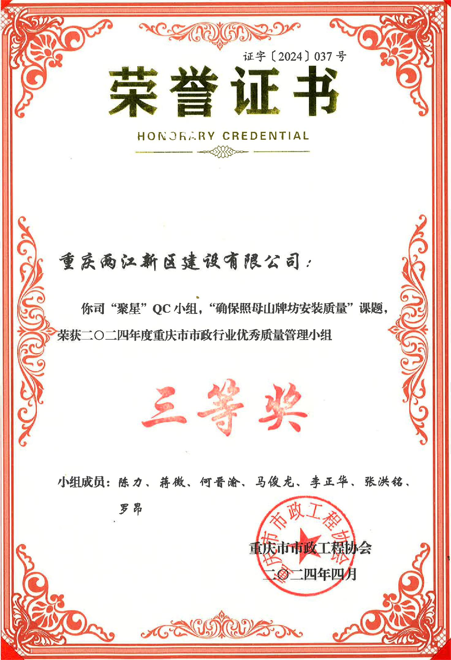 重慶市QC成果獎項