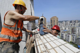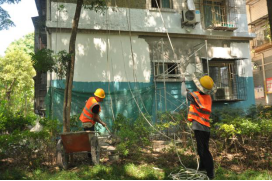 “蜘蛛人”VS“煉丹爐”:兩江建設人給安置房外墻換“新衣”