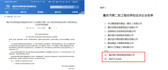 喜報!兩江建設公司成功入選重慶市第二批總承包試點企業(yè)